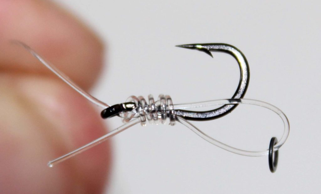 I used Ashima components, and found them to be ideally suited for this rig. The Poltergeist fluorocarbon was just the ticket as it is softer than some stiff link material yet still held it’s chod shape.