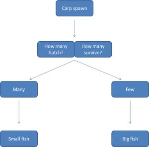 The theory behind this is pretty clear when you think about the life history of carp. The more carp there are, the more competition there is for food. This leads to there being less food for each individual carp, which leads to slower growth and smaller average size.